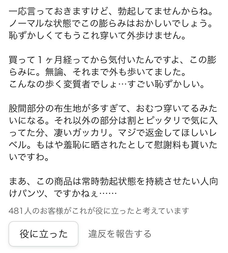ノーマルな状態でこの膨らみはおかしいでしょう。恥ずかしくてもうこれ穿いて外歩けません。